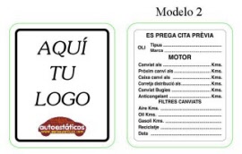 Los Autoestáticos® son pegatinas con impresión doble visión, es decir que se ven tanto por la parte interior como por la parte exterior del vehículo. En la parte exterior, es decir desde fuera del vehículo se ve la publicidad de su taller, logo, dirección, teléfono, etc, y en la parte interior la que se ve desde dentro del vehículo, toda la información de las revisiones, cambio de aceite, filtros, etc